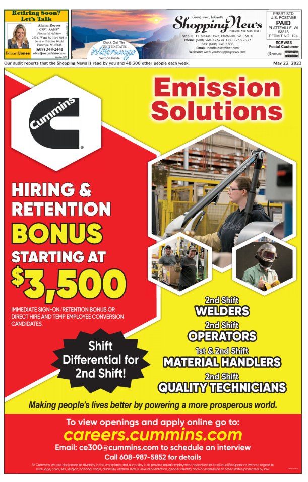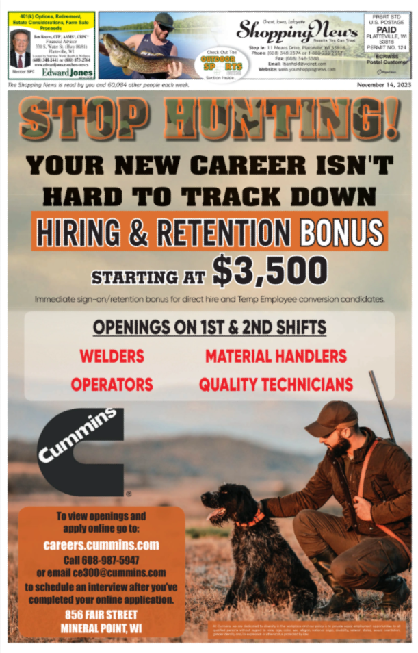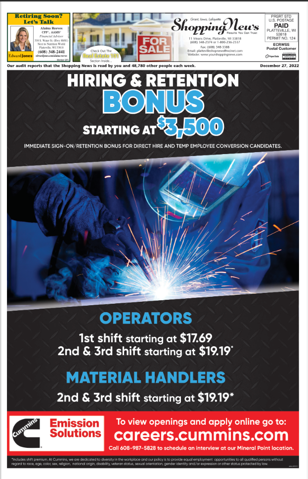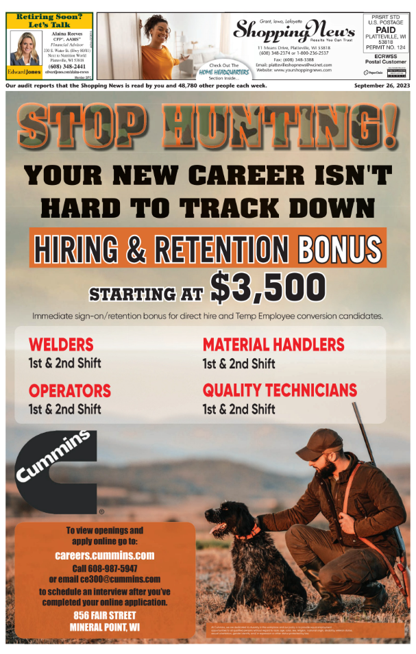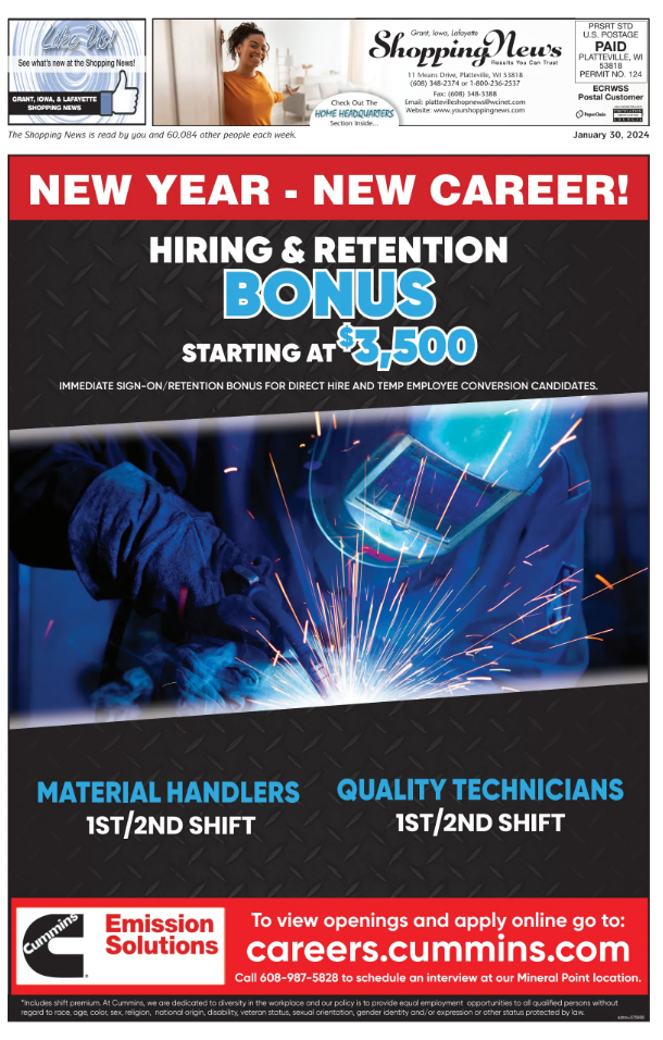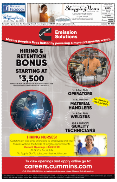 Grant, Iowa & Lafayette Weekly Shopping News