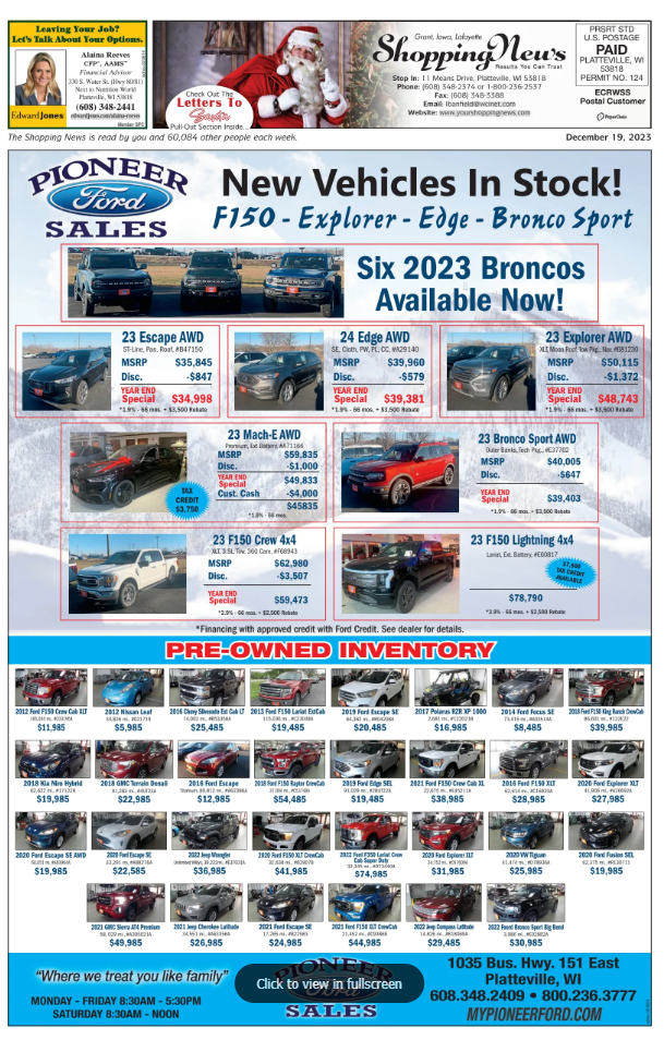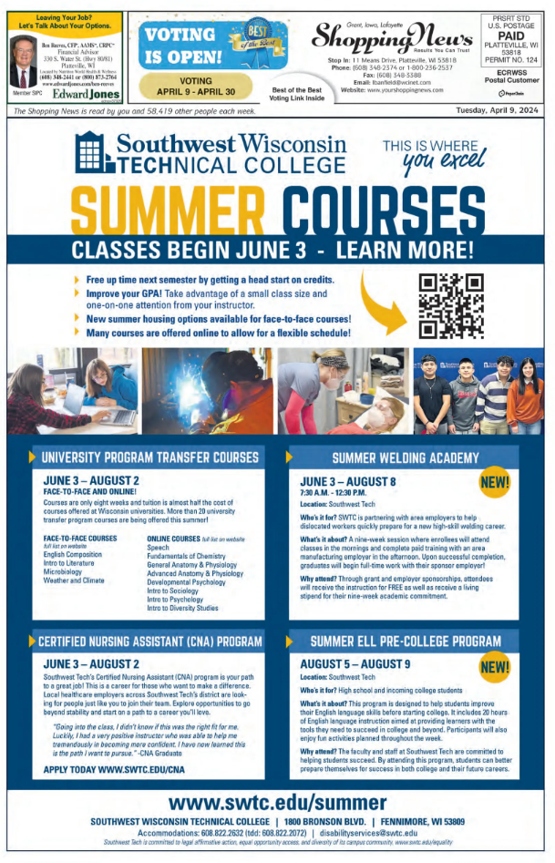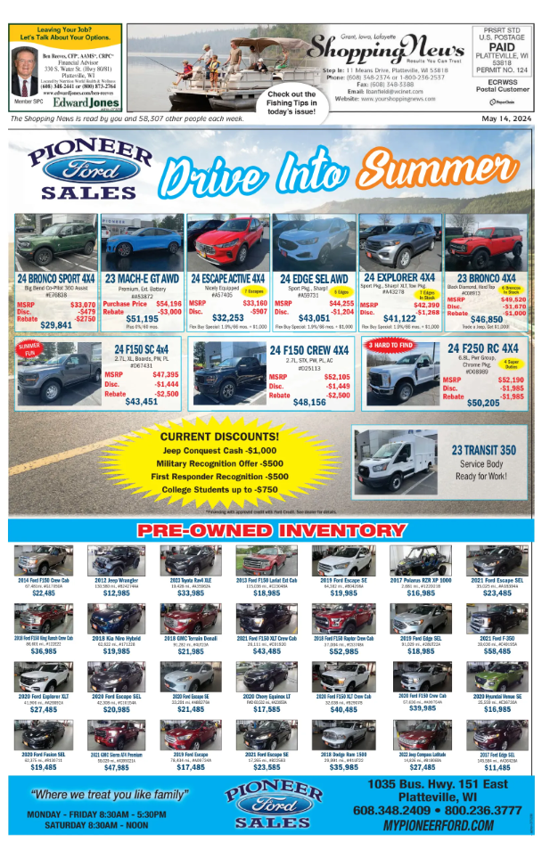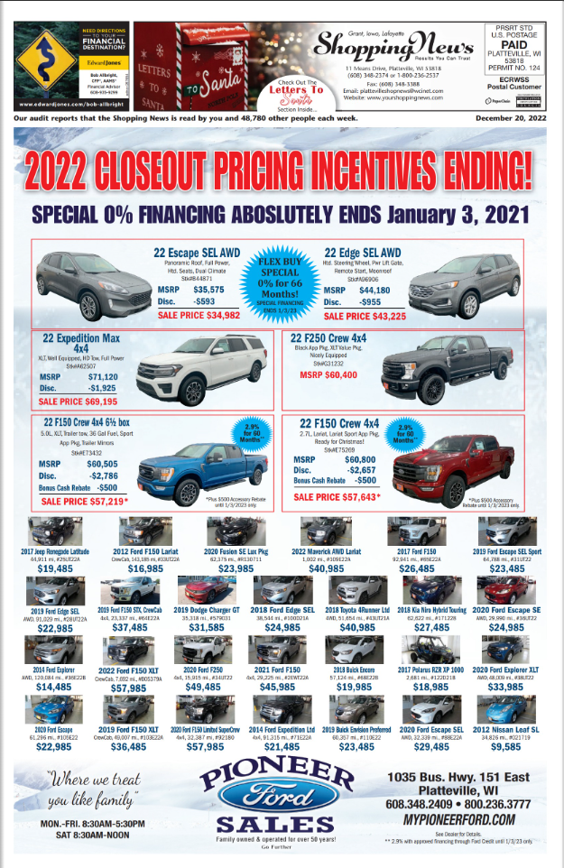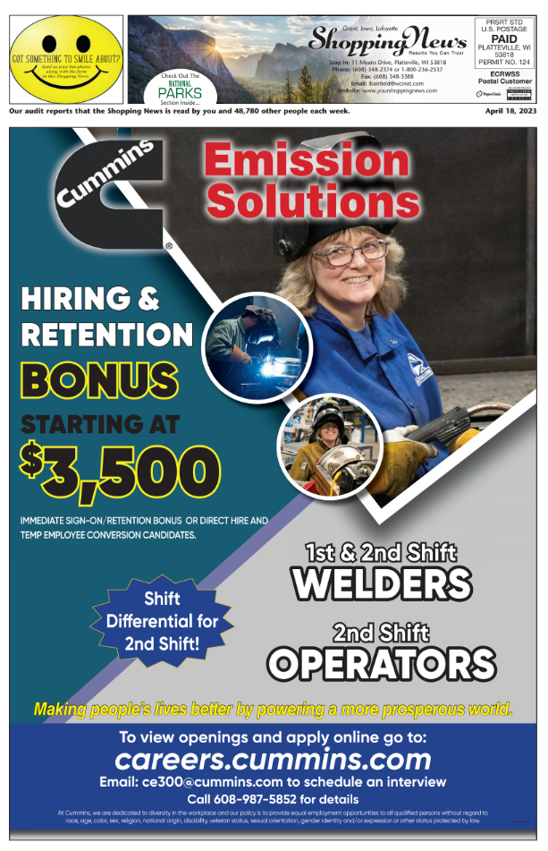 Grant, Iowa & Lafayette Weekly Shopping News