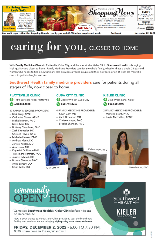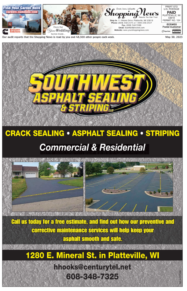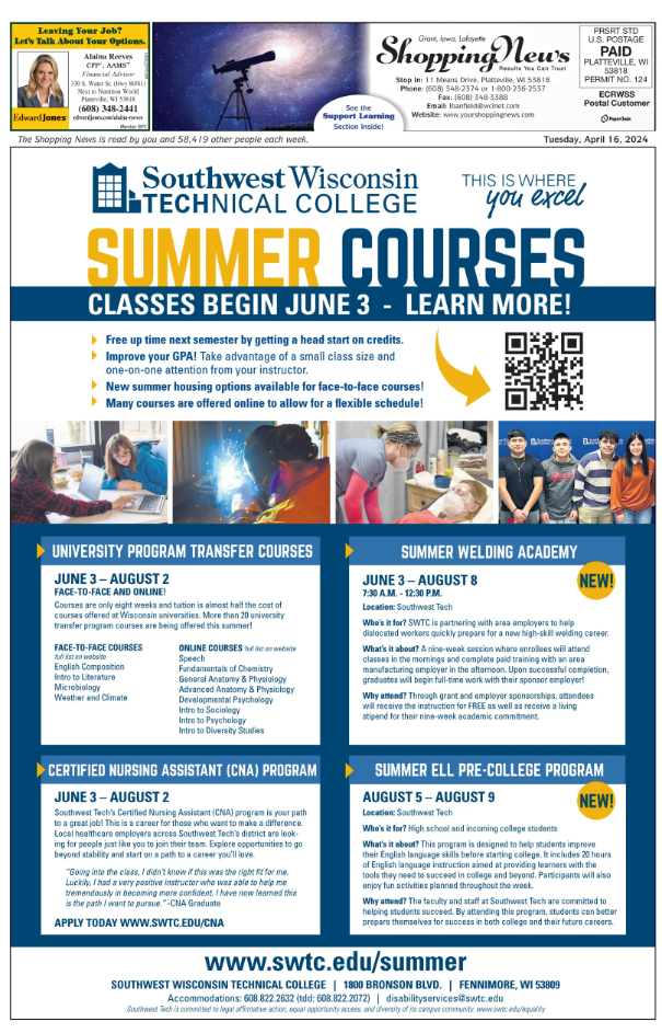 We thank you for reading the Shopping News and appreciated the opportunity to be a link in communicating all that's happening in our local communities.