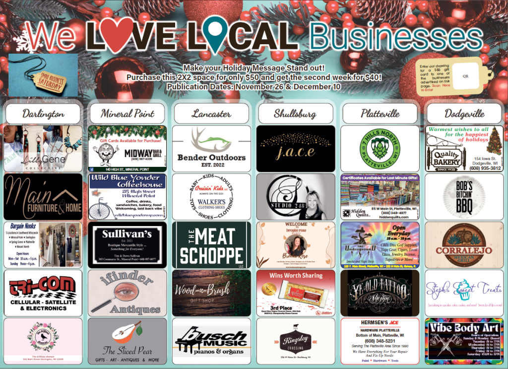 Shop Local Posted on October 17, 2024October 17, 2024 by shoppingnews Make your Holiday Message Stand Out! Purchase this 2X2 space for only $50 and get the second week for $40! Publication Dates” November 26 & December 10. Form Placeholder